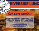 Score a delicious deal with Cville Local Deals! Just $25 gets you $50 to spend at Riverside Lunch—yep, DOUBLE the flavor for half the price! Grab your gift certificates Friday, April 10th at 9AM—but don’t wait, these will go FAST!